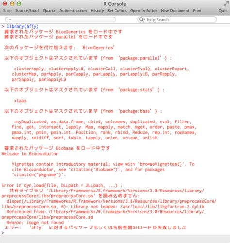 R-3.0.0がリリースされてた。新しもの好きなので、早速インストールして、BioConductorもインストールしなおす。 試しに、ちょっとGEOのデータを使ってみるか、、、と、思ったら、さっそくハマった。 preprocessCoreといういつもお世話になっているlibraryが…